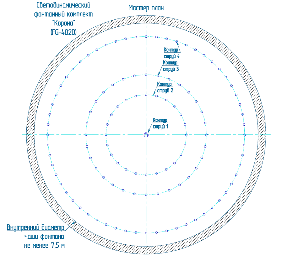 Статический - водная картина не меняется. Встроена программа переключения цветов подсветки. Высота струй может быть отрегулирована при помощи запорной арматуры.