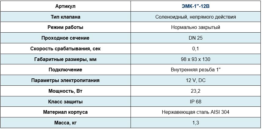 Быстродействующий электромагнитный клапан, IP68, DN25, 12B DC, ЭМК-1"-12В, нерж. сталь